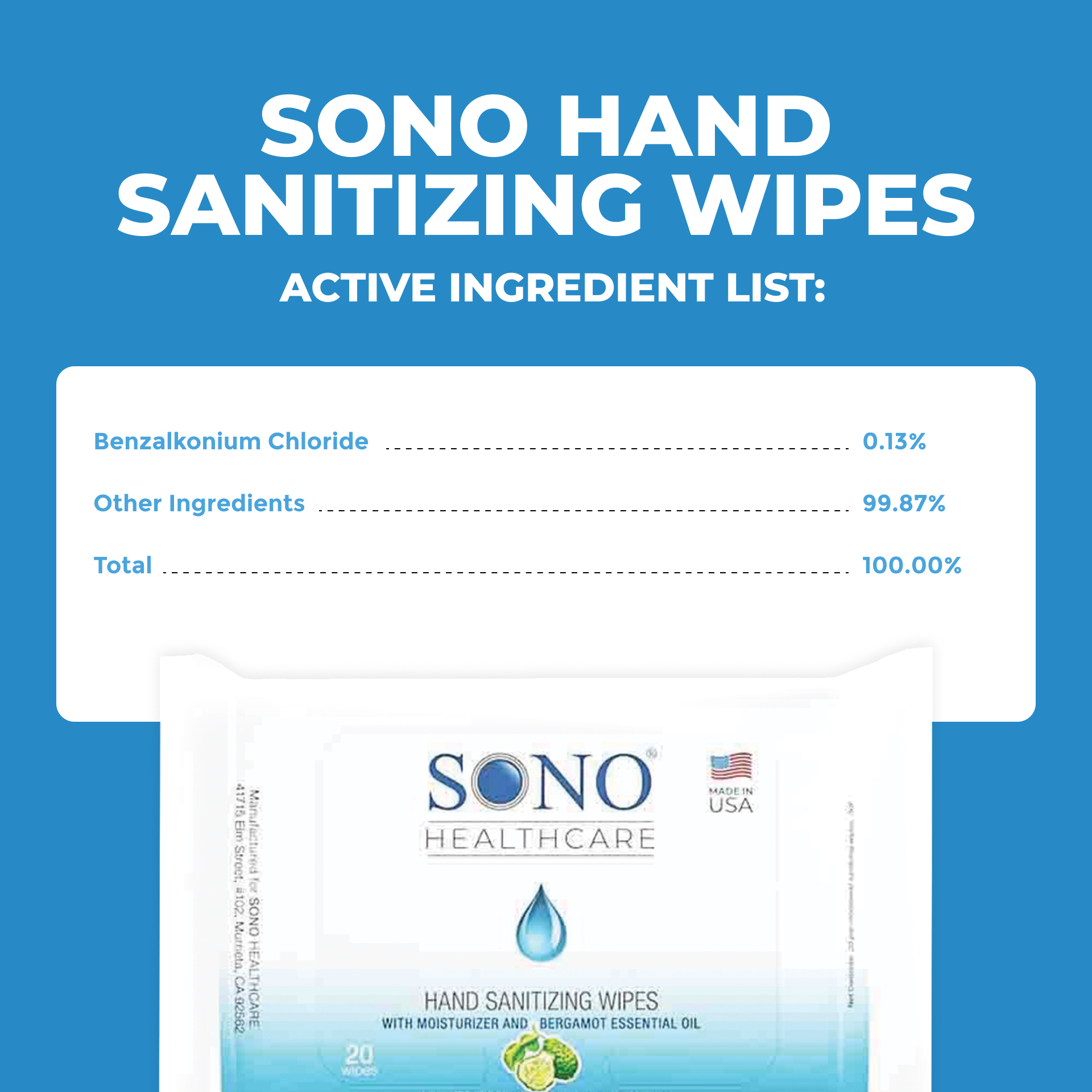 - 24 packs of SONO Hand Sanitizing Wipes.